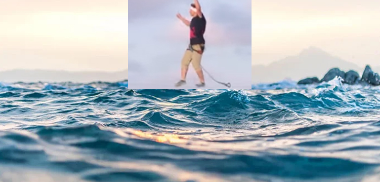 آپ نے مہم جو افراد کو زمین پر پیدل چل کر ملکوں ملکوں سفر کرتے دیکھا ہوگا لیکن ایک ایتھلیٹ نے سمندر کے اوپر پیدل سفر کر کے سب کو حیران کر دیا۔