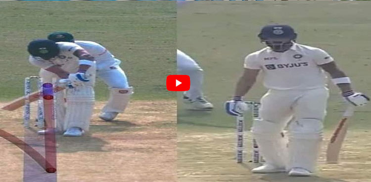 بھارت کی تیسری وکٹ 48 رنز پر اسوقت گری جب مایہ ناز بیٹر ویرات کوہلیکو بنگلہ دیشی اسپنر تیج السلام کے گھومتی گیند نے چکمہ دیا جس کے باعث وہ ایل بی ڈبلیو ہوگئے۔