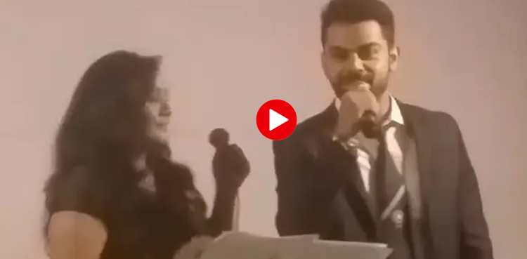 وائرل ویڈیو میں بھارتی کرکٹر ویرات کوہلی سریلی آواز میں ساتھی گلوکارہ کے ہمراہ مشہور گیت گاتے ہوئے دیکھے جاسکتے ہیں۔