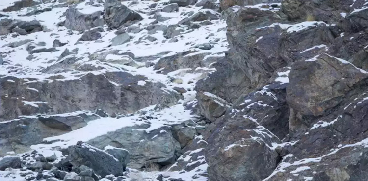 جی ہاں !! یہ ایک برفانی چیتا ہے جو اس شدید سردی میں شاید کسی شکار کی تلاش میں نکلا ہوا ہے۔