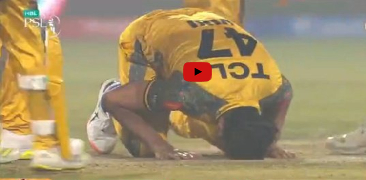 ریکارڈ بنانے کے بعد وہاب ریاض نے میدان میں ہیں سجدہ شکر ادا کیا اور ساتھیوں کھلاڑیوں نے انہیں مبارکباد دی۔