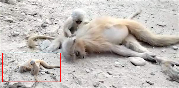 محکمہ وائلڈ لائف کے آفیسر کا کہنا تھا کہ لنگور کا بچہ اپنی ماں کو ’اماں اٹھ جاؤ‘ کہہ کر جگانے کی کوشش کررہا تھا۔