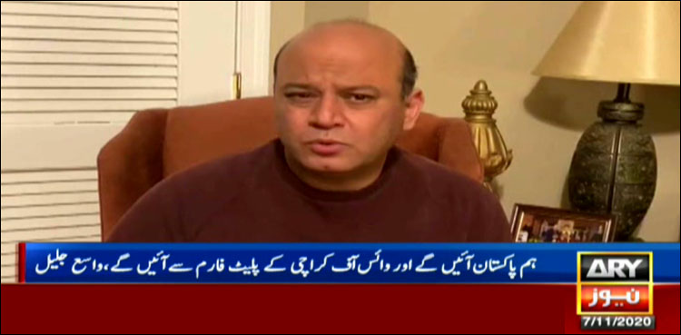 اے آر وائی نیوز کی رپورٹ کے مطابق ایم کیو ایم کے سابق رہنما واسع جلیل کا کہنا ہے کہ مہاجر حقوق کے لیے گرینڈ الائنس بنائیں گے، پیپلزپارٹی مہاجر قوم کے خلاف مذموم سازشیں کرتی ہے، پاکستان ہمارا وطن ہے واپس آکر کردار ادا کریں گے۔