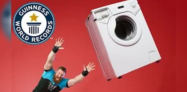 واشنگ مشین کو کئی فٹ تک اچھالنے کا ریکارڈ قائم
