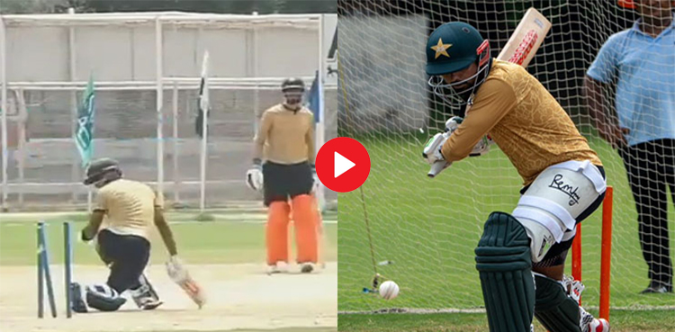 بابراعظم پریکٹس میچ کے دوران مقامی بولر کے ہاتھوں کلین بولڈ ہو گئے۔