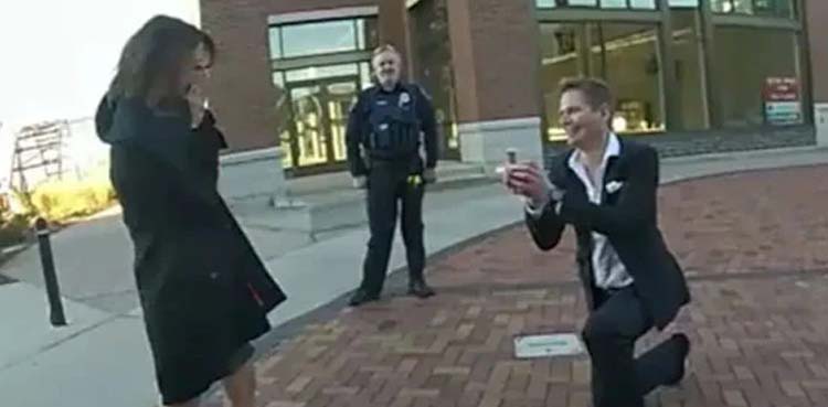 امریکا میں نوجوان کی جانب سے خاتون دوست کو شادی کی پیشکش کرنے ےکے دوران پولیس بھی آگئی جس کی ویڈیو وائرل ہوگئی۔
