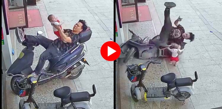 ایسی ہی ایک ویڈیو سوشل میڈیا پر وائرل ہورہی ہے جس میں باپ نے شیر خوار بچے کو موٹر سائیکل سے گرتے وقت بچا لیا۔