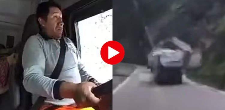 ویڈیو میں دیکھا جاسکتا ہے کہ لینڈسلائیڈنگ کی زد میں آنے سے بچنے کے لیے ڈرائیورز نے چھلانگ لگادی۔