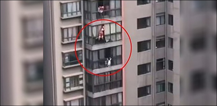 بیجنگ: چین میں فائر فائٹرز نے کثیر المنزلہ عمارت کی بالکونی میں لٹکی کمسن بچی کی زندگی بچالی جس کی ویڈیو وائرل ہوگئی۔