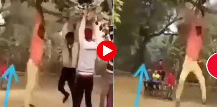 وائرل ویڈیو میں موجود وہ دوست اڑتا ہوا اوپر جاتا ہے اور اپنی گرفت کھو دیتا ہے پھر منہ کے بل زمین پر آکر گرتا ہے۔