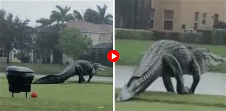 فلوریڈا: امریکی ریاست فلوریڈا میں واقع گالف کلب میں ڈائناسور نما دیو قامت مگرمچھ کو دیکھ کر شہری حواس باختہ ہوگیا۔