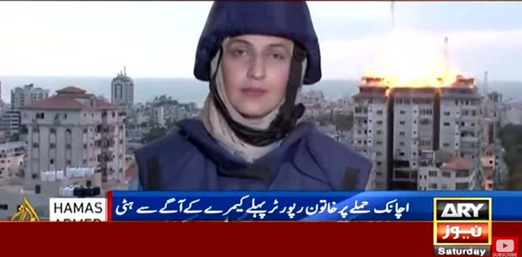 غزہ سے لائیو رپورٹنگ کے دوران الجزیرہ کی رپورٹر کے عقب میں اسرائیل کے حملے کی ویڈیو سامنے آگئی۔