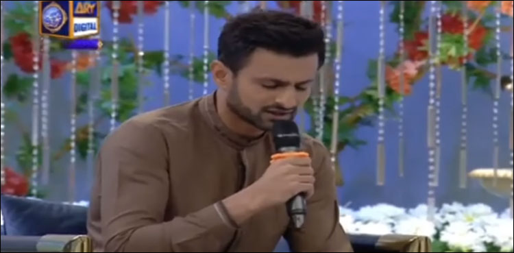 تفصیلات کے مطابق قومی ٹیم کے آل راؤنڈر شعیب ملک نے اے آر وائی ڈیجیٹل کے پروگرام ’شانِ رمضان‘ میں شرکت کی اور نعت ’زہے مقدر حضور حق سے سلام آیا پیام آیا‘ پڑھی جسے مداحوں کی جانب سے خوب سراہا جارہا ہے۔
