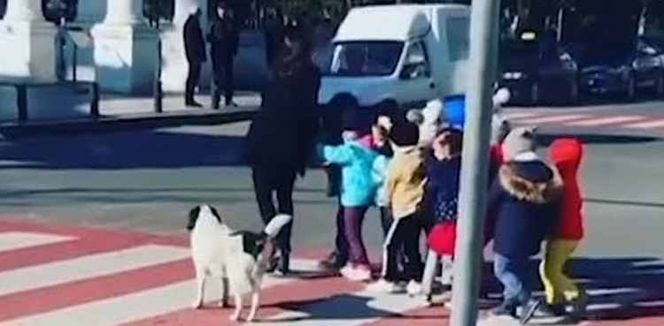 اس آوارہ کتے نے اسکول کے بچوں کی سڑک پار کرنے میں مدد کرکے انسان دوستی ثابت کردی۔