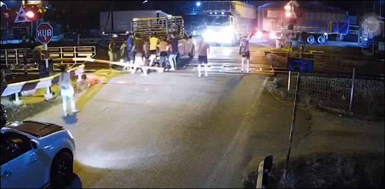 بنکاک: تھائی لینڈ میں گنے سے بھڑا ٹرک ٹرین کی زد میں آگیا جس کی ویڈیو سوشل میڈیا پر وائرل ہوگئی۔