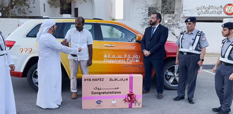 ابوظہبی پولیس ہیپی نیس پیٹرول نے مختلف سڑکوں پر ان ڈرائیوروں کو تحائف دیے جن کے ٹریفک ریکارڈز کلیئر تھے۔