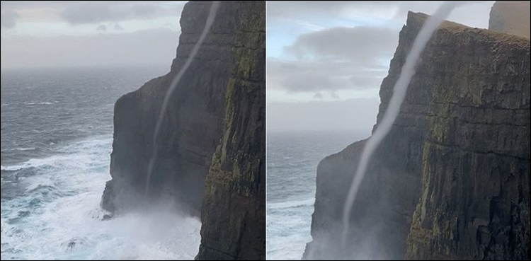 کوپن ہیگن : سمندر کی لہر اور پہاڑوں پر چلنے والی ہواوٓں کے آپس میں ٹکرانے کے بعد پانی کے اوپر کی جانب سے بہنے کے منظر کی ویڈیو وائرل ہوگئی۔