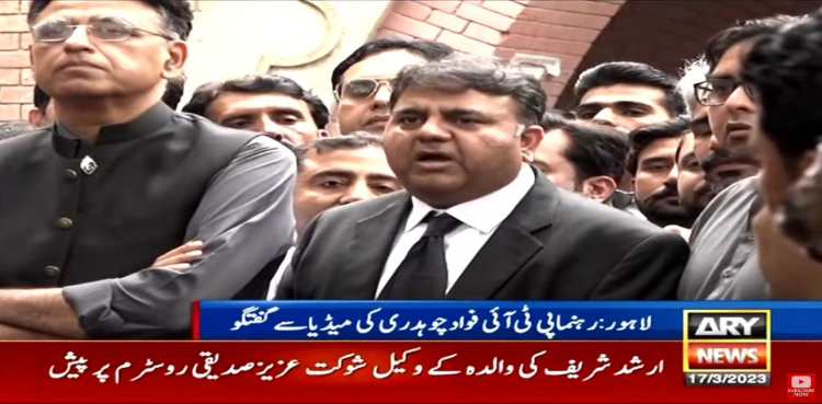 فوادچوہدری نے کہا کہ کل جج صاحب نےحکم دیا تو ہم شاہ محمود کی سربراہی میں ملاقات کی، عمران خان کی سیکیورٹی، جلسےکا کہا اتوار کو نہ کریں، اب پیر کو جلسہ ہوگا۔