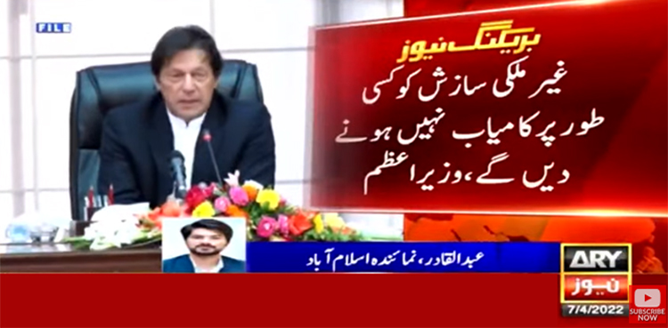 وزیراعظم نے کہا کہ پی ٹی آئی نئےانتخابات کےلئےتیار ہے غیرملکی سازش کوکسی طورپرکامیاب نہیں ہونے دیں گے۔