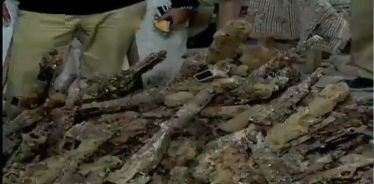 پولیس کی جانب سے زمین سے برآمد ناکارہ ہتھیاروں کی گنتی کا عمل بھی مکمل کرلیا گیا ہے، برآمد اسلحے میں 63 ریوالورز، 183 اسٹین گن، 13 اینٹی ائیر کرافٹ گن، ایل ایم جیز، 6 ماؤزر اور مختلف ہتھیاروں کے بیرل شامل ہیں۔