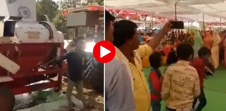 اس کلپ میں باراتیوں کے لیے ایئر کنڈیشنگ سسٹم کے طور پر استعمال ہونے والی ایک تھریشنگ مشین کو دکھایا گیا ہے جو شادی کے مقام پر پہنچ رہے تھے۔