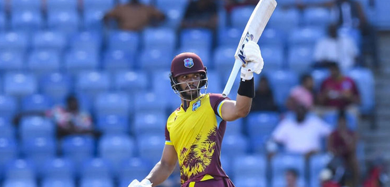 ویسٹ انڈین اوپنرز نے 41 رنز کا آغاز فراہم کیا تاہم پھر یکے بعد دیگرے چار وکٹیں گر گئیں۔ 54 رنز پر چار وکٹیں گنوانے کے بعد اوپنر برینڈن کنگز اور کپتان روومین پاؤل نے ٹیم کی بیٹنگ کو سہارا دیا۔