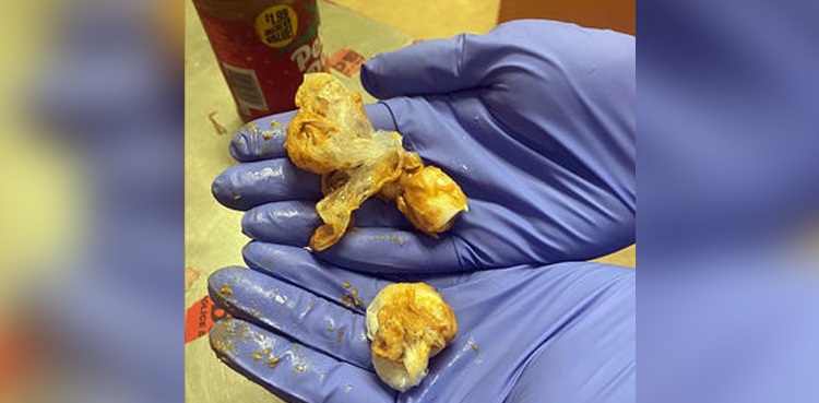 ملزم نے پلاسٹ کے دو چھوٹے بیگز میں منشیات چھپا رکھی تھی  جبکہ اوپری حصہ مکھن سے ڈھنکا ہوا تھا۔