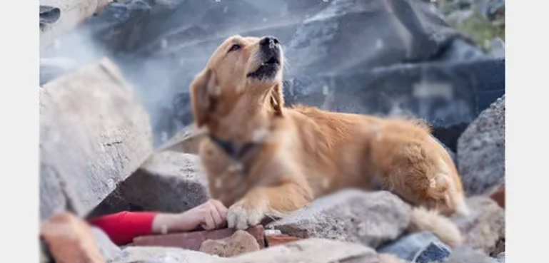 یہ تصویر شیئر کرنے والے نے لکھا کہ ’’ترکی میں ایک کتا اپنے مالک کو بچانے کیلیے امدادی کارکنوں کو متوجہ کرنے کی کوشش کر رہا ہے‘‘۔