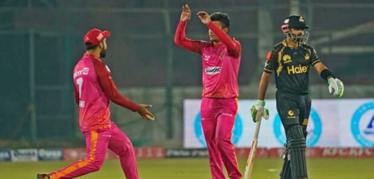 گزشتہ روز میچ میں زلمی نے پہلے بیٹنگ کی۔ کپتان بابر اعظم نے ساتھی اوپنر محمد حارث کے ساتھ مل طوفان کی تیزی سے اننگ شروع کی۔ پاور پلے کا بھرپور استعمال کرتے ہوئے دونوں بلے بازوں نے بولرز کی درگت بنائی اور صرف 7 اوورز میں 76 رنز کا شاندار آغاز فراہم کیا۔ اس موقع پر کپتان شاداب خان نے حارث کا 40 کے انفرادی اسکور پر اپنی ہی گیند پر کیچ کرکے اننگ پر بریک لگایا۔