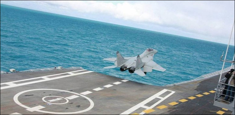 روسی میڈیا کا کہنا ہے کہ مگ 29 طیارے کو پہلی مرتبہ بحری بیڑے کے ڈیک پر تعینات کیا گیا ہے۔