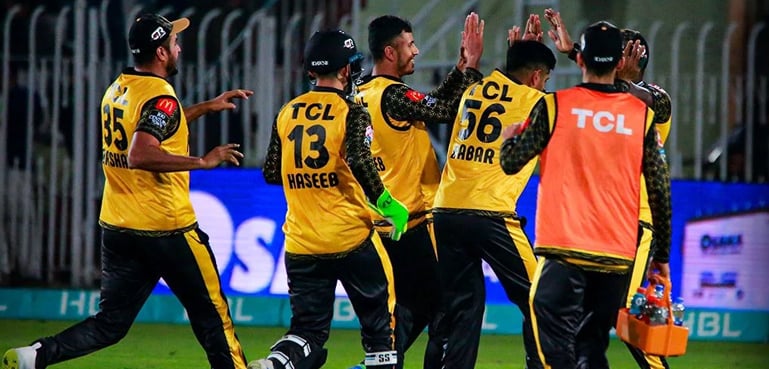 دو رنز پر تین اہم وکٹیں گرنے کے بعد شائقین کو پشاور سے بڑے اسکور کی توقع نہیں تھی مگر پھر کریز پر ٹام کوہلر اور حسیب اللہ نے نصف سنچریاں بنا کر زلمی کی پوزیشن مستحکم کی تاہم گیم چینجر ویسٹ انڈیز سے تعلق رکھنے والے مڈل آرڈر بلے باز روومین پاویل رہے جو حسیب کے آؤٹ ہونے کے بعد کریز پر آئے اور آتے ہی چھا گئے۔