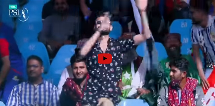 پشاور زلمی اور اسلام آباد یونائیٹڈ کے مابین ہونے والے میچ میں نوجوان کے منفرد انداز میں جشن منانے کی ویڈیو شیئر کی گئی ہے۔