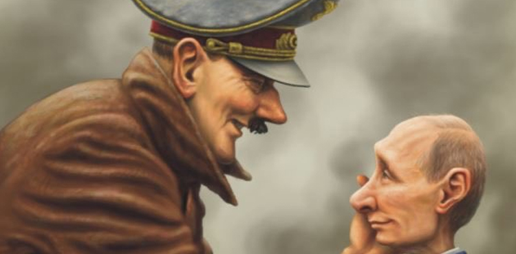 روس فوج کے یوکرین پر حملہ کرتے ہی یوکرین آفیشل ٹوئٹر اکاؤنٹ سے معنی خیز پوسٹ شیئر کی گئی جس میں ہٹلر اور پیوٹن کو دکھایا گیا ہے۔