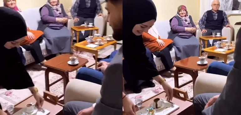 ترکیہ میں یہ روایت ہر جگہ تو نہیں لیکن اکثر اس کو اپناتے ہیں کہ لڑکی جب لڑکے کو دیکھنے کے لیے اس کے پاس چائے لے کر آتی ہے اور اگر اسے لڑکا اپنے جیون ساتھی کے طور پر پسند آ جائے تو اسی وقت تھوڑی کی چائے ٹرے میں گرا دیتی ہے جس کا مطلب لڑکی کا رشتے کے لیے ہاں کرنا ہوتا ہے۔