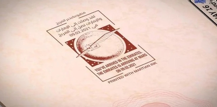 رپورٹ کے مطابق ‘الامل مشن’ مریخ کے مدار میں داخل ہوچکا ہے، اسی سلسلے میں دبئی ایئرپورٹ پہنچے والے مسافروں کے پاسپورٹ پر خصوصی مہر لگائی جارہی ہے جس میں لکھا ہے ‘آپ امارات پہنچ گئے اور امارات مریخ پر پہنچ گیا‘۔