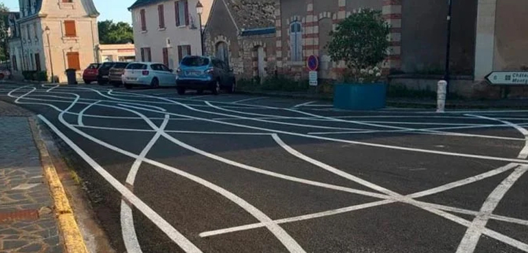 فرانس کے ایک قصبے میں مصروف شاہراہ پر آڑھی ترچھی سفید لکیریں سب کو حیران کر رہی ہیں لیکن اس کا مقصد ٹریفک کی رفتار کم کرنا ہے۔