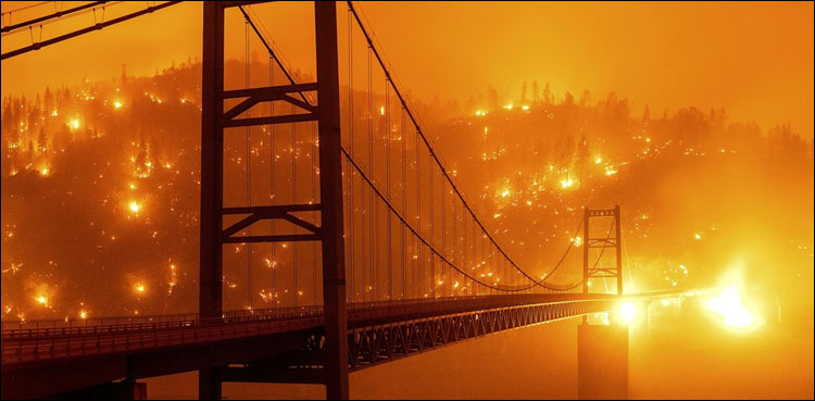 غیر ملکی خبر رساں ادارے کی رپورٹ کے مطابق یہ خوفناک آگ امریکی ریاست کیلیفیورنیا کے جنگلا میں کئی روز قبل بھڑکی تھی جو دیکھتے ہی دیکھتے لاکھوں ایکٹرز تک پھیل چکی ہے۔