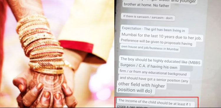یہی نہیں خاتون نے بتایا کہ وہ سالانہ 4 لاکھ روپے کماتی ہیں اور توقع کرتی ہیں کہ ان کا دولہا کم از کم ایک کروڑ روپے سالانہ کمائے۔