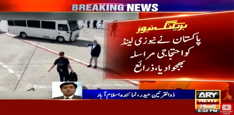 پاکستانی سفیر نے بھی نیوزی لینڈ کی وزارت خارجہ سے رابطہ کر کے معاملےکی وضاحت مانگی ہے۔ تھریٹ الرٹ کی نوعیت اور اس سے جڑی معلومات فراہم کرنے کا کہا گیا ہے۔