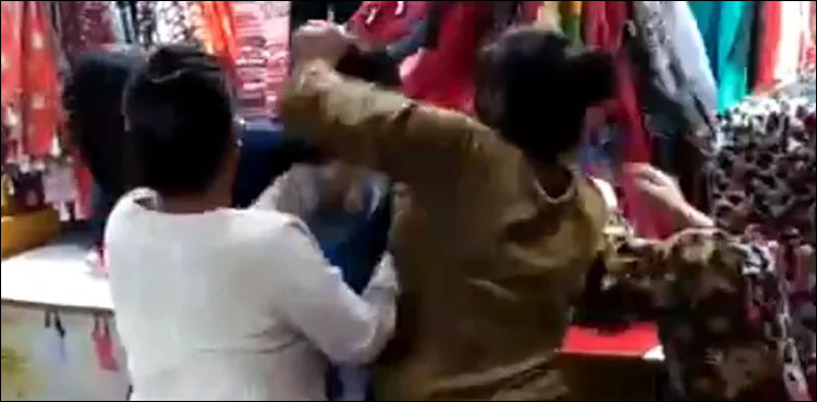 تفصیلات کے مطابق بھارتی ریاست اترپردیش کے ضلع ایتھا میں مارکیٹ میں خواتین کی بڑی تعداد مذہبی رسومات کی مناسبت سے خریداری کے لیے موجود تھی، اس دوران ایک لڑکی نے خاتون کو آنٹی کہہ کر پکارا تو وہ آپے سے باہر ہوگئیں اور لڑکی کے بال پکڑ کر اسے مارنا شروع کردیا۔