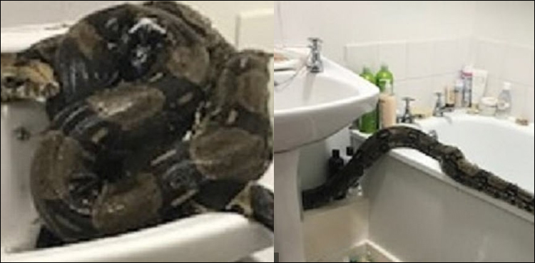 لندن : برطانوی خاتون اس وقت خوفزدہ ہوگئی جب آٹھ فٹ لمبے سانپ کو بیت الخلاء میں دیکھا۔