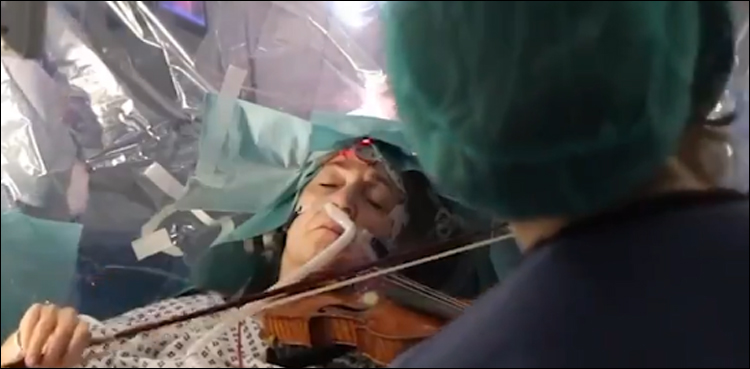ویڈیو میں دیکھا جاسکتا ہے کہ ڈاکٹرز آپریشن کررہے تھے تو اس دوران خاتون وائلن بجاتی رہیں اور انہیں کسی قسم کی تکلیف بھی محسوس نہیں ہوئی۔