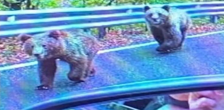 خاتون نے جیسے ہی کھڑکی کا شیشہ نیچے کیا اور تصویر لینی چاہی، ان میں سے ایک ریچھ گاڑی کے باہر اپنی پچھلی ٹانگوں پر کھڑا ہوگیا اور خاتوں کو اپنا پنجہ مارا۔