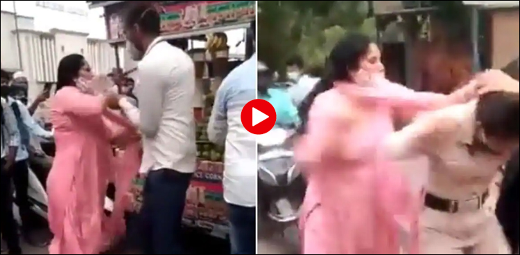 بھارت سے ایک ایسی ہی ویڈیو وائرل ہورہی ہے جس میں ایک خاتون نے ماسک نہ پہننے پر چالان کرنے والے سرکاری اہلکاروں کی پٹائی کردی۔