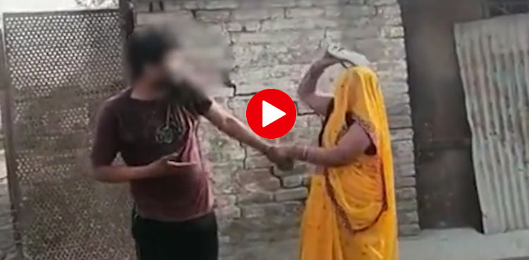 ویڈیو میں دیکھا جاسکتا ہے کہ خاتون نے اپنی چپل نکالی اور اس شخص کو عوام کے سامنے مارا ہنگامہ سن کر گاؤں والوں کا ایک گروپ جائے وقوعہ پر پہنچ گیا اور اس شخص کو پیٹنا شروع کردیا۔