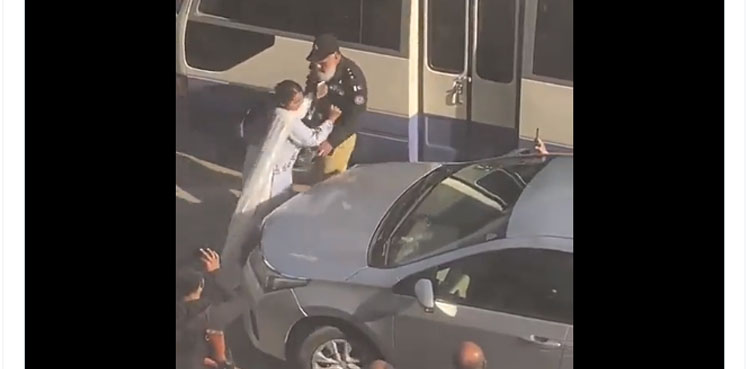 مذکورہ ویڈیو میں ایک خاتون کو ڈی ایس پی ٹریفک کو تھپڑ مارتے ہوئے دیکھا جاسکتا ہے، ڈی ایس پی کار سوار خاتون کو مبینہ طور پر فینسی نمبر پلیٹ اور ٹنٹڈ گلاسز نصب کرنے پر روکتا ہے جس پر وہ اشتعال میں آجاتی ہے تاہم بزرگ ٹریفک ڈی ایس پی خاتون کی بدتمیزی کے باوجود تحمل کا مظاہرہ کرتے ہوئے اپنی ڈیوٹی سرانجام دیتے رہے۔