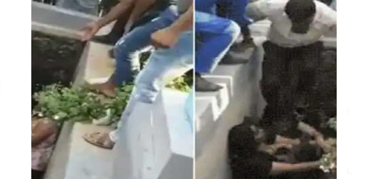 ویڈیو میں دیکھا جاسکتا ہے کہ اس موقع پر خاندان کے دیگر لوگ بھی نالے میں کود پٌڑے اور ان کو چھڑوانے کے بجائے خود بھی ان کے ساتھ شامل ہوگئے۔