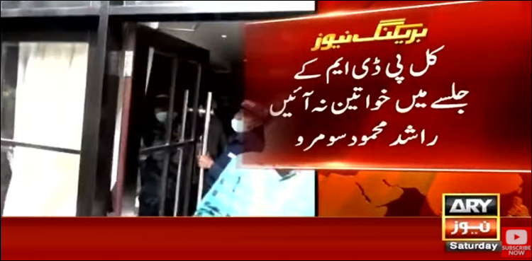 اے آر وائی نیوز کے مطابق کراچی میں پی ڈی ایم جلسے سے ایک روز قبل جے یو آئی کے اہم رہنما نے بیان دیا کہ کل کے جلسے میں خواتین شرکت نہ کریں۔ راشد سومرو نے کہا کہ ’ہم خواتین کےخلاف نہیں بلکہ ان کا احترام کرتے ہیں، اس لیے جلسے میں شرکت سے روک رہے ہیں‘۔