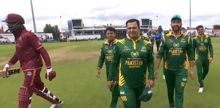 نارتھمپٹن: ورلڈ چیمپئن شپ آف لیجنڈز کے پہلے سیمی فائنل میں پاکستان نے ویسٹ انڈیز چیمپئنز کو 20 رنز شکست دے کر فائنل میں رسائی حاصل کرلی۔