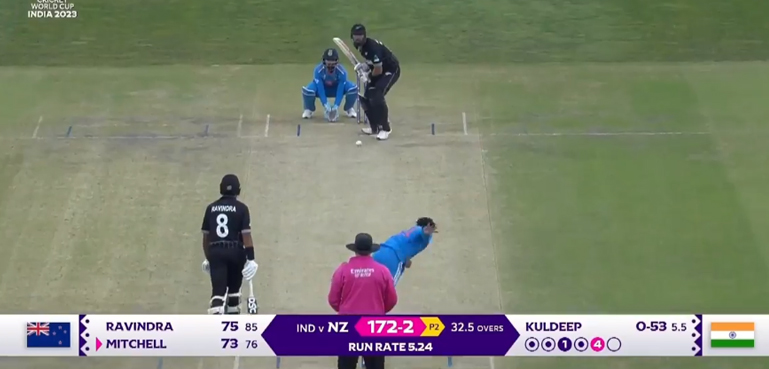 نیوزی لینڈ نے 33 اوورز کے اختتام پر رنز 174 بنا لیے ہیں۔ رچن رویندرا 79 اور ڈیرل مچل نے 75 رنز بنا رکھے ہیں۔